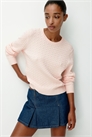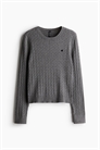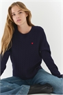 Облегающий джемпер из трикотажа в рубчик с маленьким вышитым сердцем на груди. Круглый вырез с ребристой отделкой и длинные рукава. Манжеты и подол отделаны тесемками.