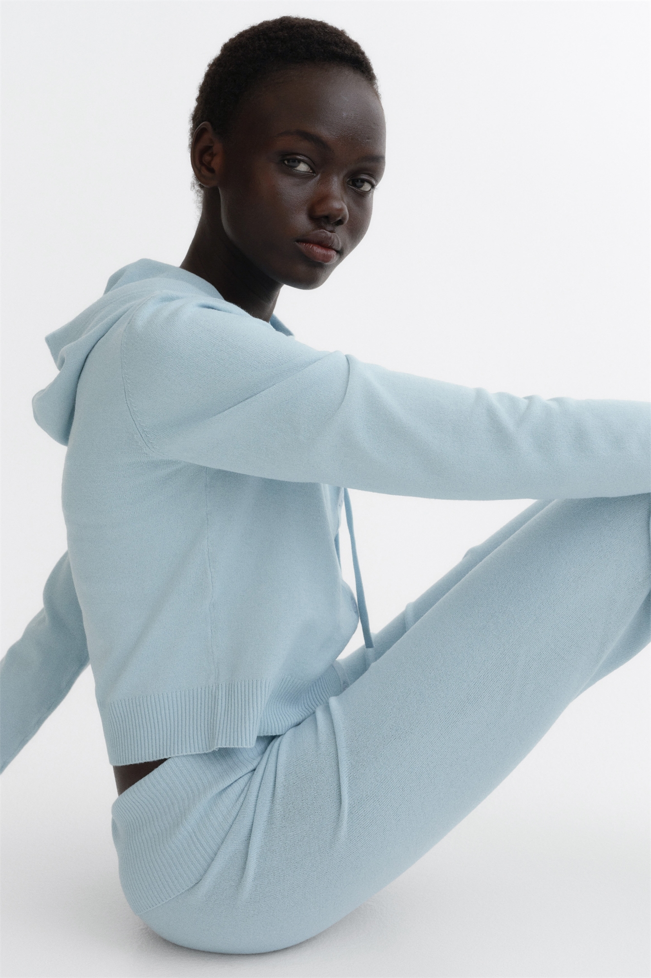 Брюки для йоги из мягкого трикотажа с заниженной талией, скрытой эластичной резинкой и широкими трикотажными складками. Слегка расклешенные ноги.