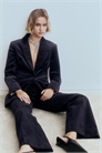 Облегающие брюки из мягкого хлопкового бархата с высокой талией, застежкой на молнию и пуговицу. Накладные карманы спереди, накладной карман сзади и расклешенные ноги со складками спереди и сзади.