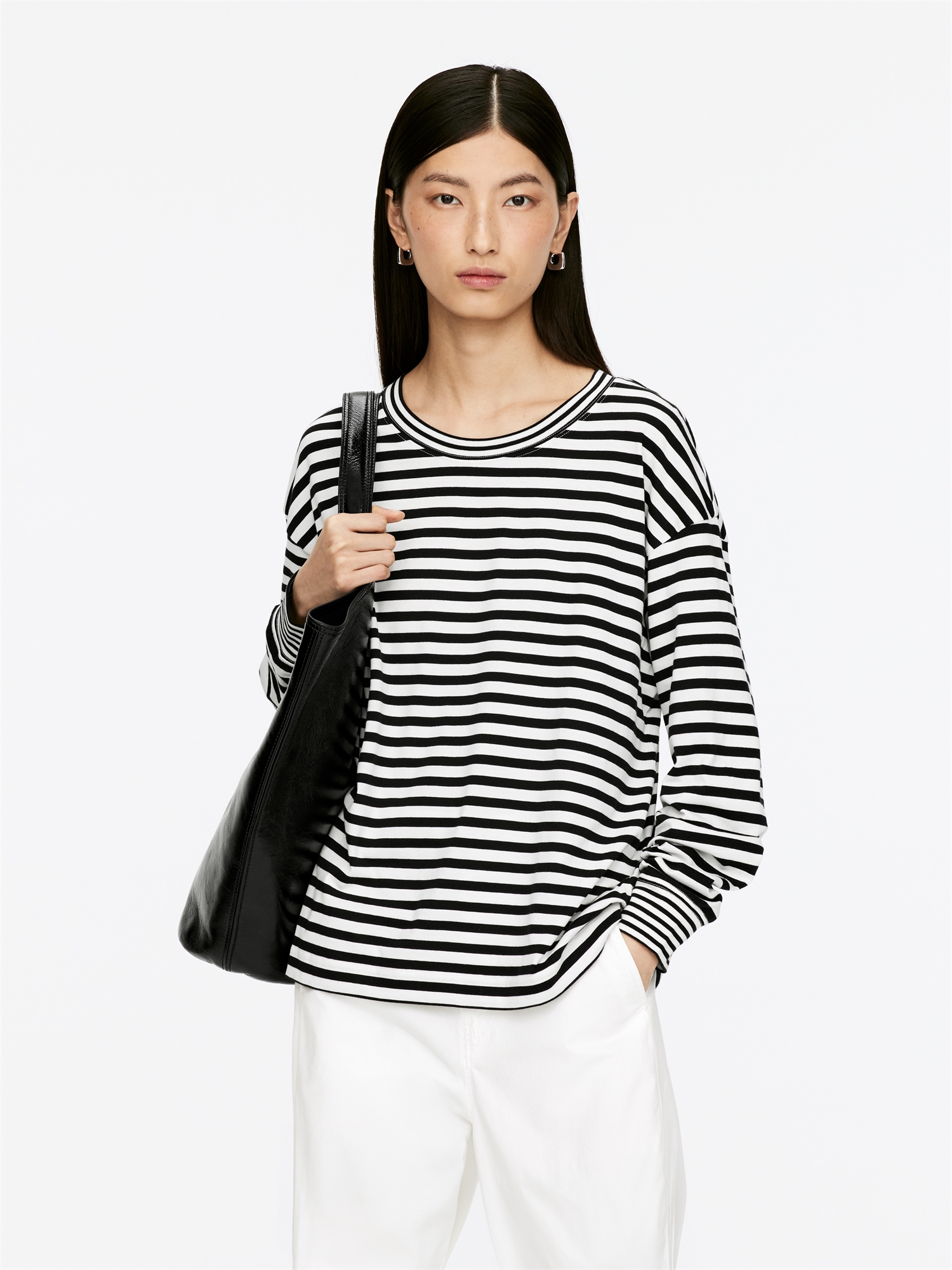 Футболка с длинными рукавами, спущенными плечами, ребристыми манжетами и ребристым вырезом. Эта модель изготовлена из хлопка Regenerative Organic Certified® (ROC). ROC - это сертификат для фермерских хозяйств, который устанавливает требования к благополучию животных, здоровью почвы и справедливости по отношению к работникам ферм. Органический хлопок выращивается без использования химических удобрений и пестицидов и не содержит генетически модифицированных организмов (ГМО).