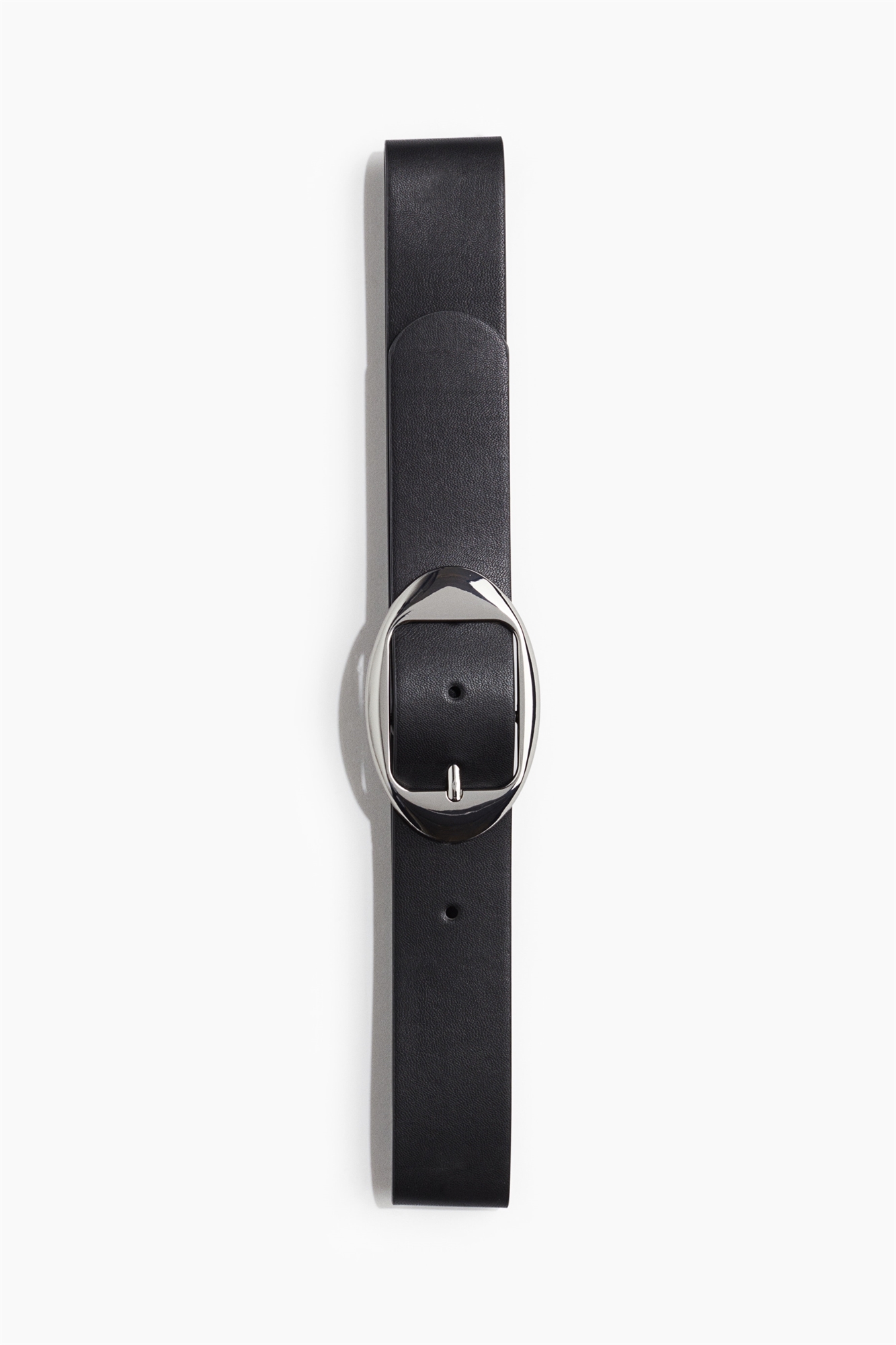 Пояс для талии из ткани с покрытием и овальной металлической пряжкой.