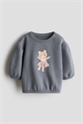 Топ из толстовочной ткани с мягкой начесом внутри и деталями из мотивов спереди. Круглый узкий вырез с ребристой отделкой и застежками с одной стороны (кроме размеров 2-4Y). Спущенные плечи и длинные рукава-баллон. Манжеты и подол отделаны узкой ребристой тесьмой.