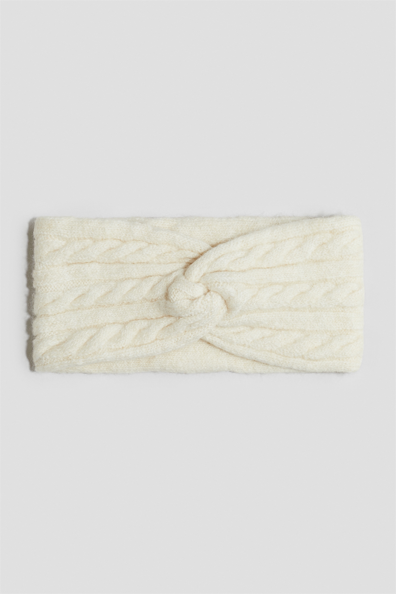 Двухслойная повязка на голову из мягкого кабельного трикотажа с декоративной витой деталью спереди.