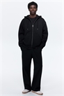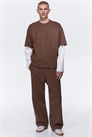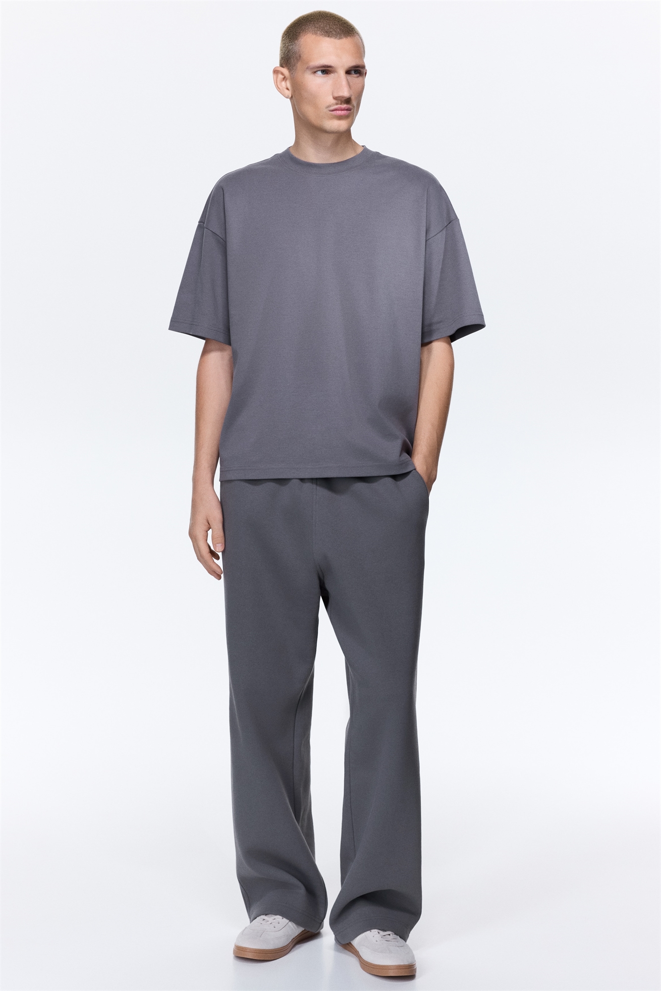 Тренировочные брюки из плотной толстовочной ткани из смеси хлопка с мягким начесом внутри. С утяжкой и эластичным поясом на талии, а также боковыми карманами. Свободный крой для пышного, но не чрезмерно большого силуэта.