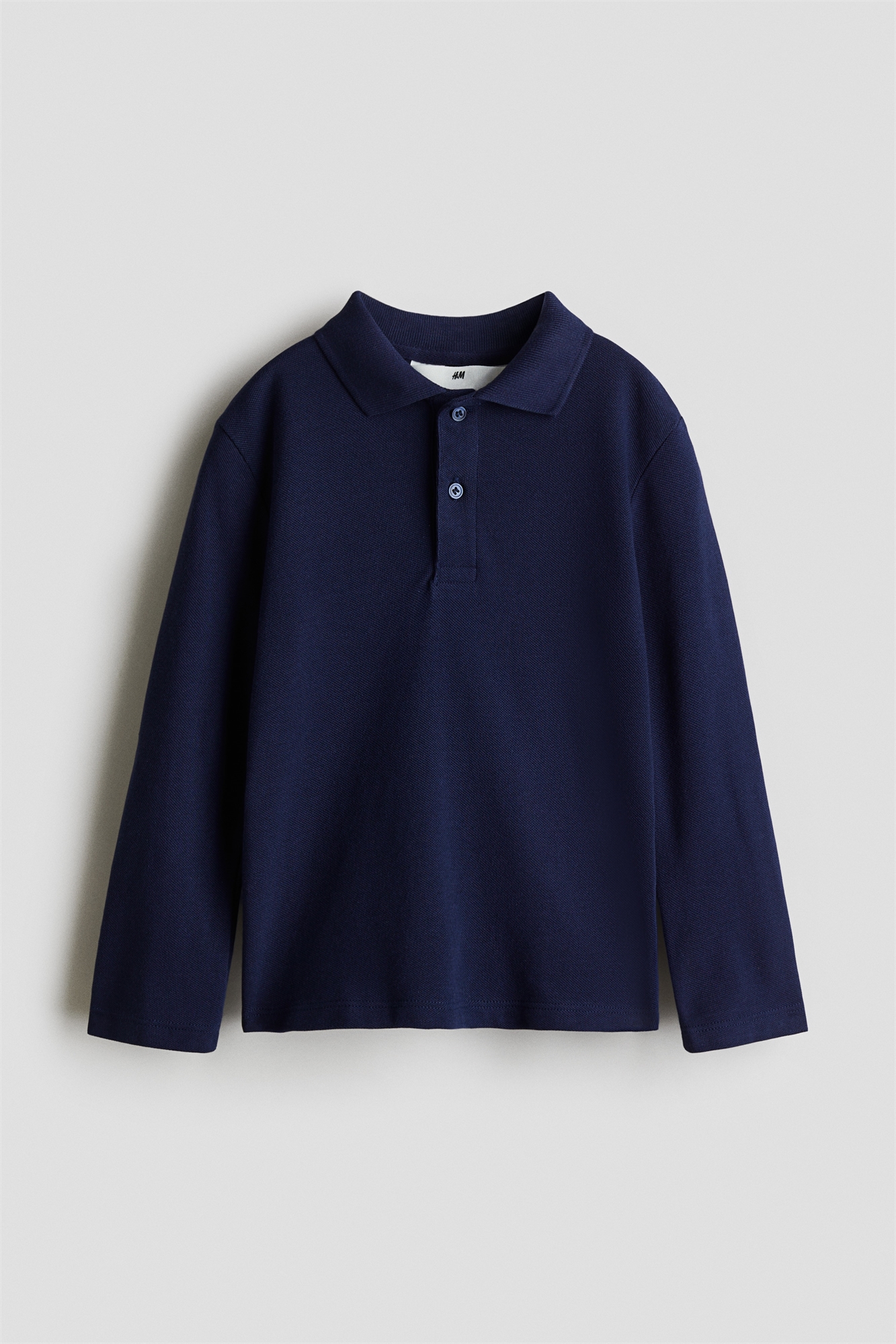 Рубашка-поло из хлопкового пике с ребристым воротником, застежкой на пуговицы и длинными рукавами.