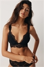 Мягкий бюстгальтер из кружева с регулируемыми бретелями и чашечками из сетчатой ткани со съемными вкладышами, которые придают форму бюсту и обеспечивают хорошую поддержку. Застежка на крючки и глазки сзади.