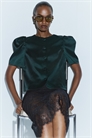Короткая приталенная блузка из саржи с легким блеском. Круглый вырез, застежка на пуговицы спереди и короткие рукава со складками в верхней части. Швы "принцесса" спереди создают привлекательный силуэт. Частично на подкладке.