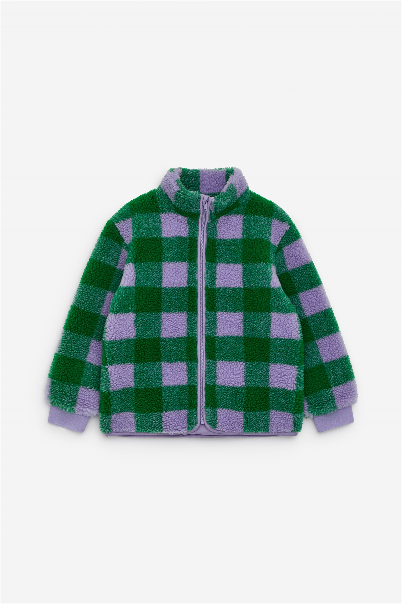 Ворсовая куртка с воротником-стойкой, застежкой на молнию и манжетами на рукавах. Расслабленный крой.