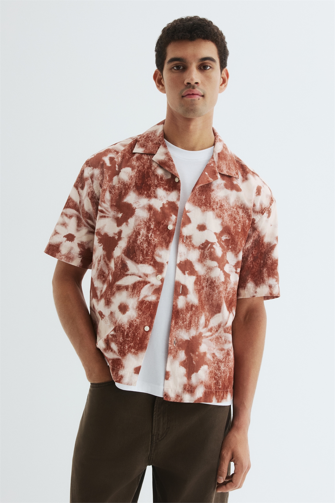 Рубашка из хлопка с короткими рукавами, курортным воротником, французским передом и прямым покроем. Свободный крой для непринужденного, но не слишком большого силуэта.