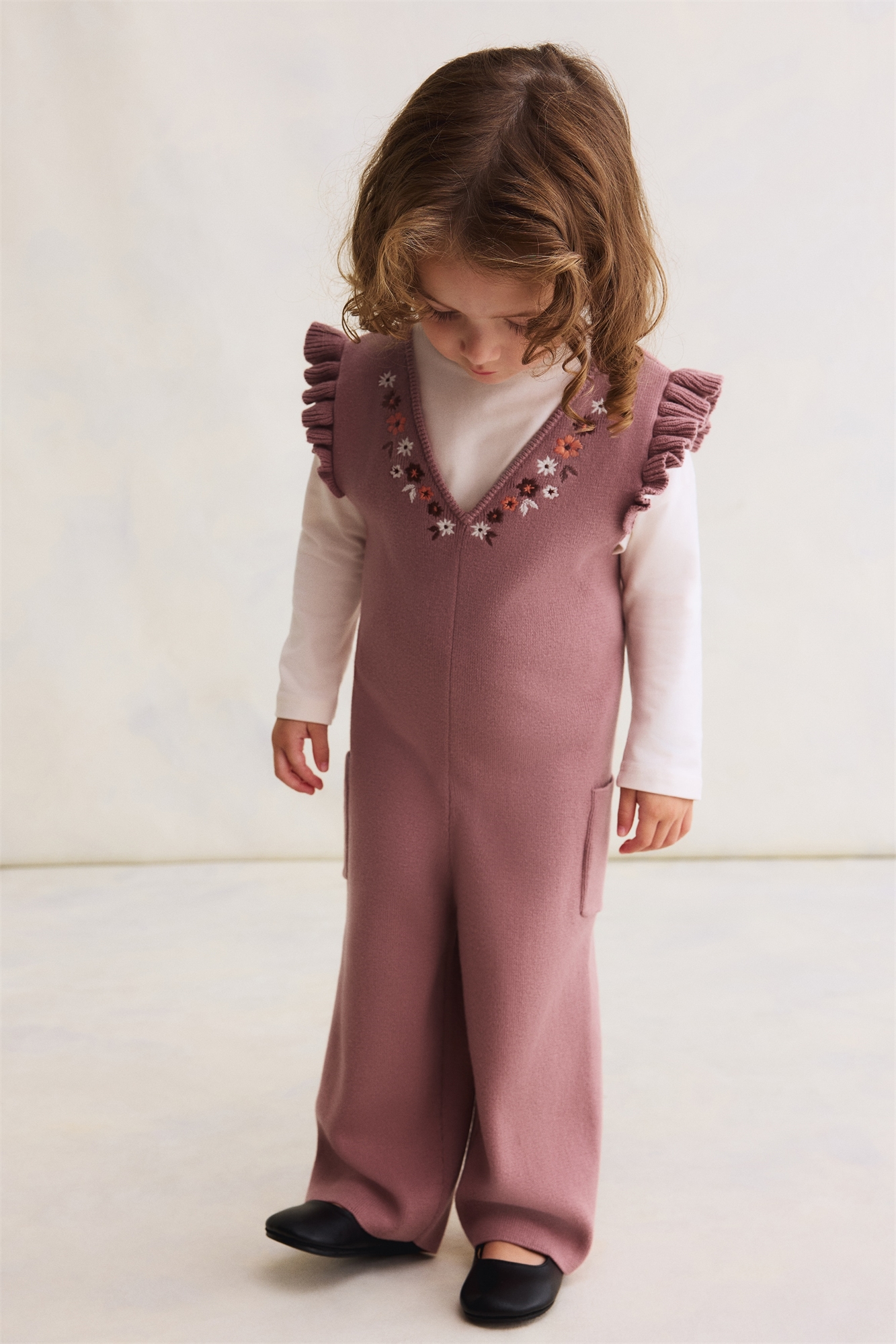 H&M Adorables. Ромпер без рукавов из мягкого тонкого трикотажа из высококачественного хлопка, украшенный вышитыми цветами. V-образный вырез с узкой окантовкой, ребристые оборки на плечах, накладные боковые карманы и длинные ноги. Коллекция H&M Adorables - это подборка качественных вещей повышенной комфортности с вечной привлекательностью.