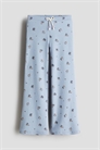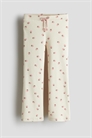 Леггинсы из мягкого ребристого трикотажа с принтом по всей длине, с эластичным поясом и декоративной завязкой спереди. Слегка расклешенные ноги.