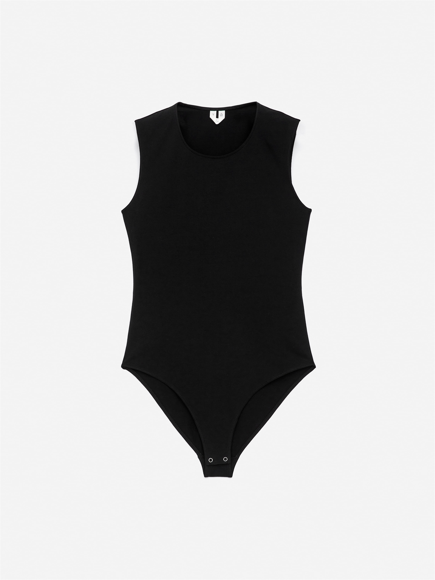 Боди-комбинезон из хлопка с добавлением стрейча. Без рукавов, с застежкой на кнопки в промежности.
