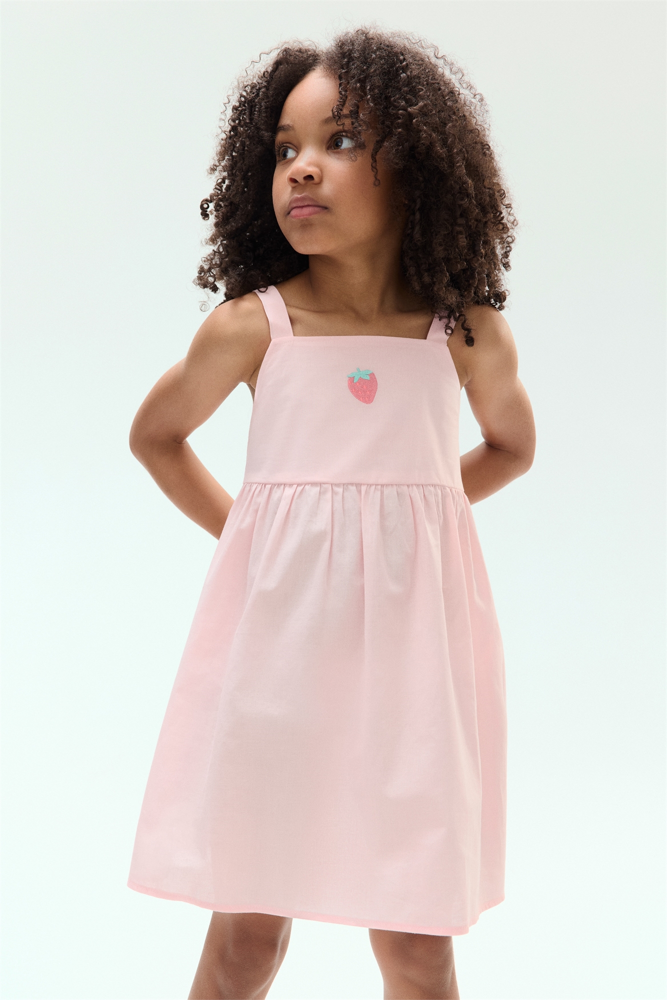 Платье без рукавов из воздушного хлопкового полотна с узкими бретелями, квадратным вырезом, сборчатым швом над талией и широкими завязками на спине.
