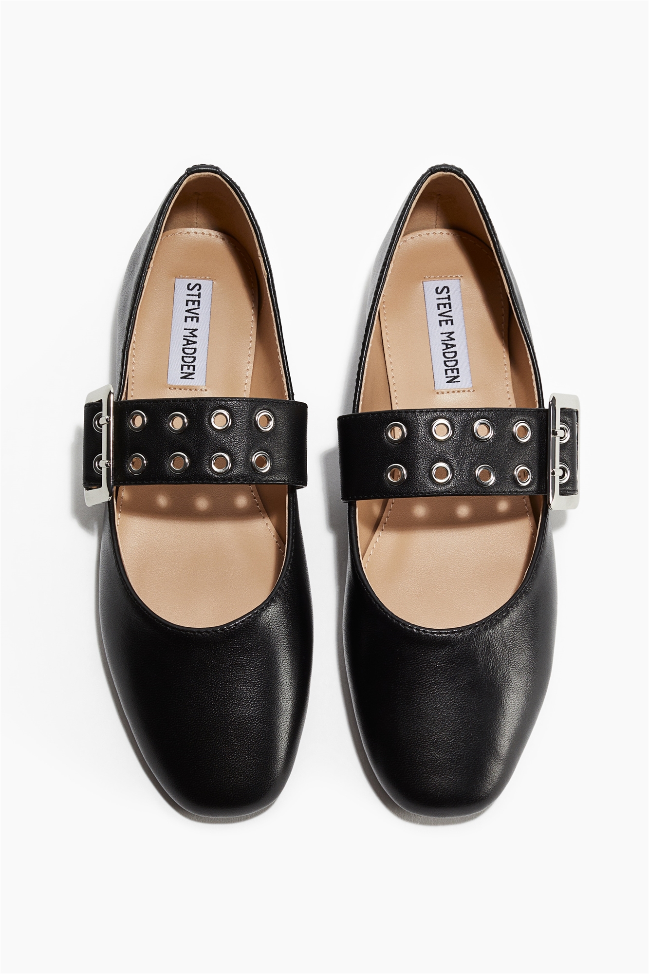 Откройте для себя городской шик с этими модными черными балеринами. Их простой дизайн подчеркивается привлекательным ремнем, который добавит смелый и стильный штрих к вашему образу. Идеальный вариант для мечтательниц и модниц, которые хотят выразить свою индивидуальность. Обязательный атрибут для смелых модниц!
