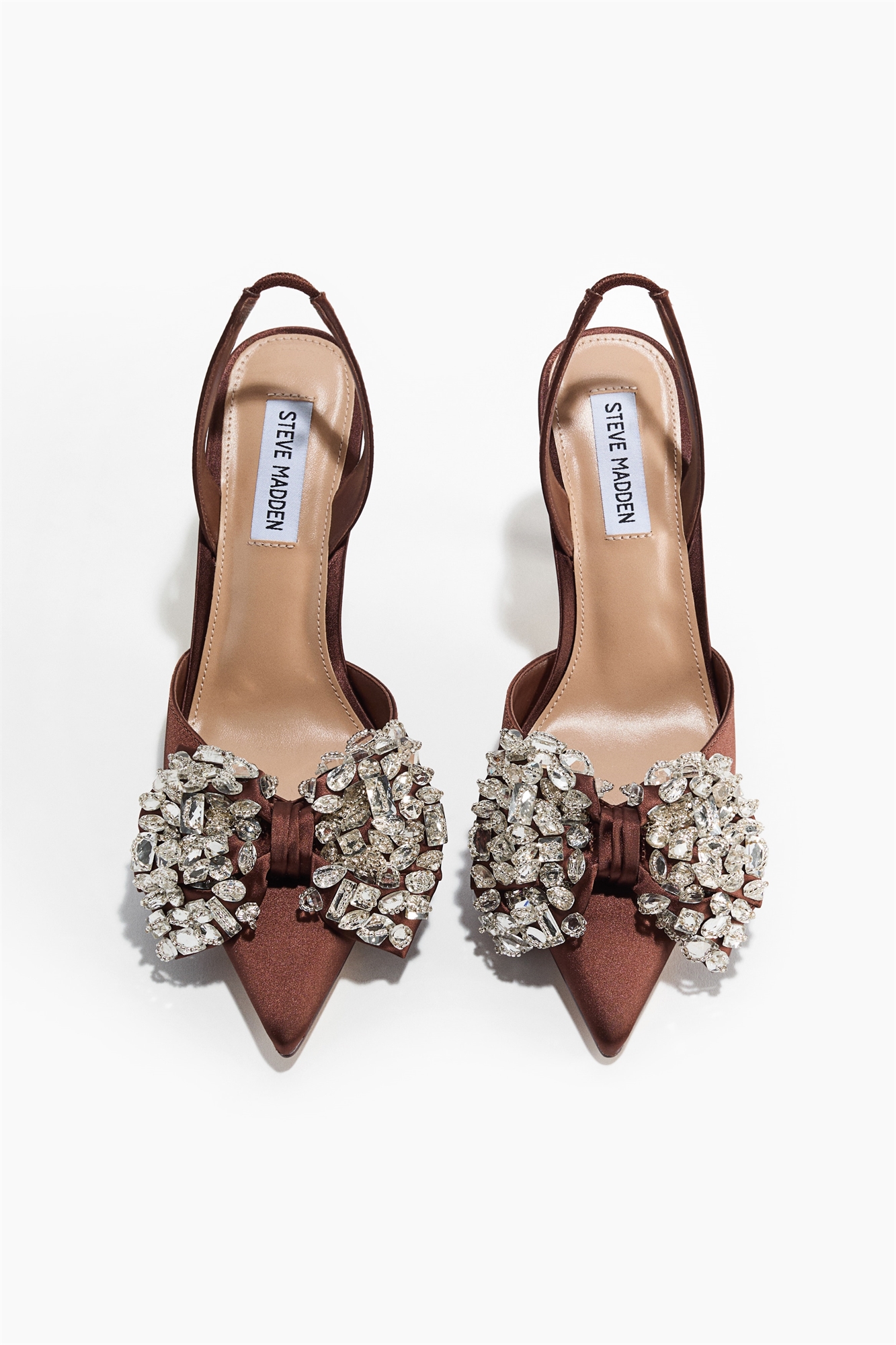 Откройте для себя идеальные коричневые туфли на каблуках со сверкающими драгоценными камнями, которые подчеркнут ваш городской стиль. Эти гламурные туфли сочетают в себе элегантность и дерзость, идеально подходящие для тех, кто хочет задавать тренды и выражать свою индивидуальность. Сделайте незабываемый выход в свет с помощью этого стильного образа.