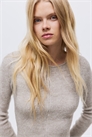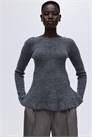 Облегающий джемпер из мягкого трикотажа в рубчик с добавлением шерсти. Аккуратный вырез-лодочка, длинные рукава и расклешенный пеплум.