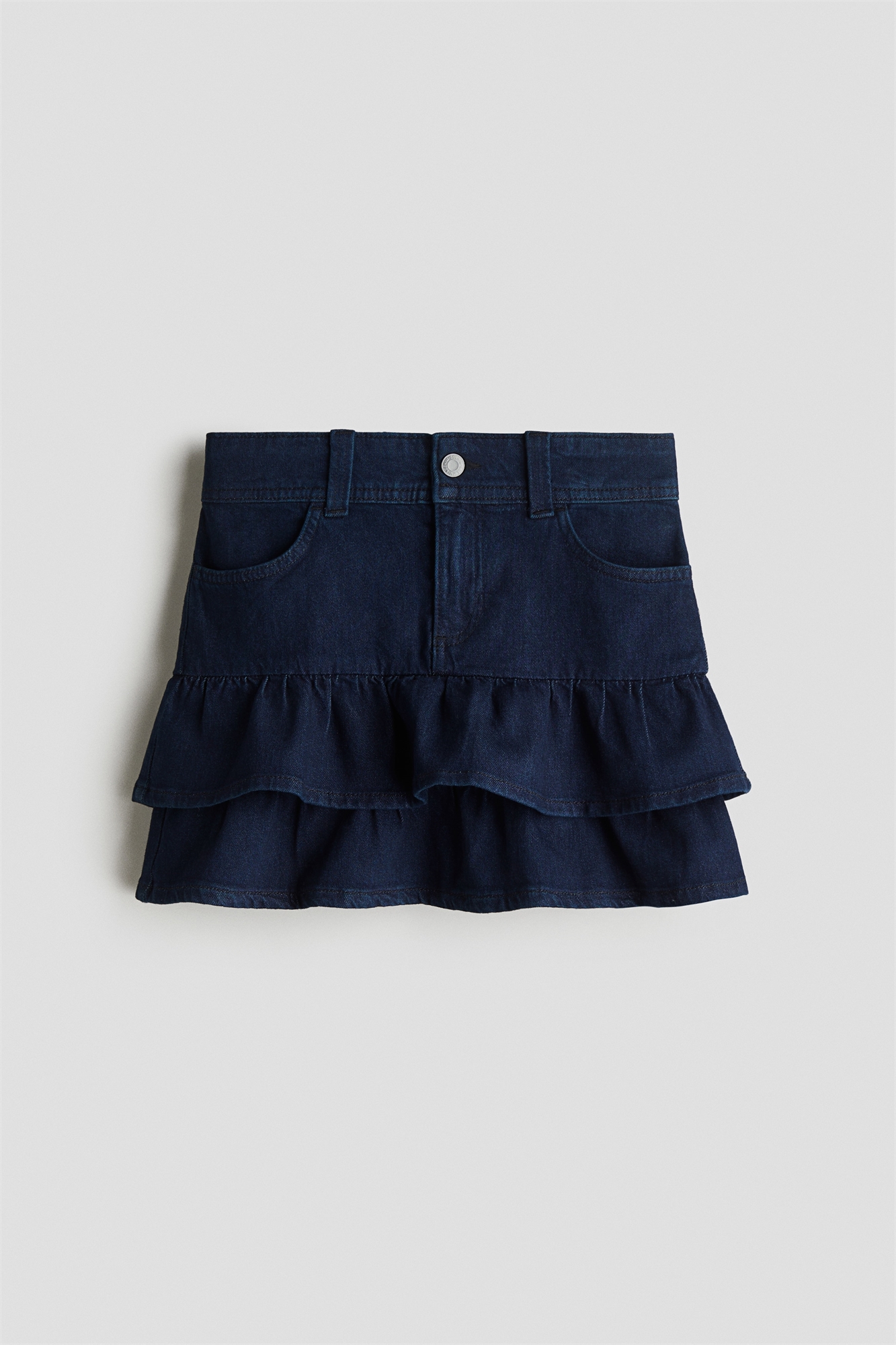 Джинсовая юбка с оборками из мягкого, эластичного хлопкового денима. Ширинка на молнии с пуговицей и передние карманы.