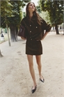 Мини-юбка а-линии из тканого материала, застежка на молнию и пуговицу. Без подкладки.