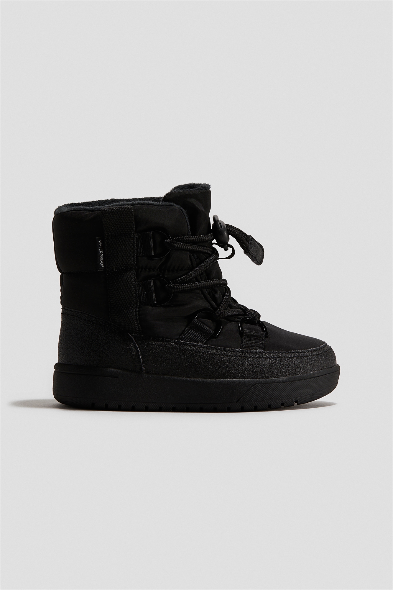 Ботинки с теплой подкладкой и водонепроницаемой мембраной, чтобы ноги оставались сухими. Шнуровка с шнурком и ограничителем спереди. Подкладка и стелька Velboa из технической пены Cellfit™ для дополнительного комфорта. Мохнатая узорчатая подошва.
