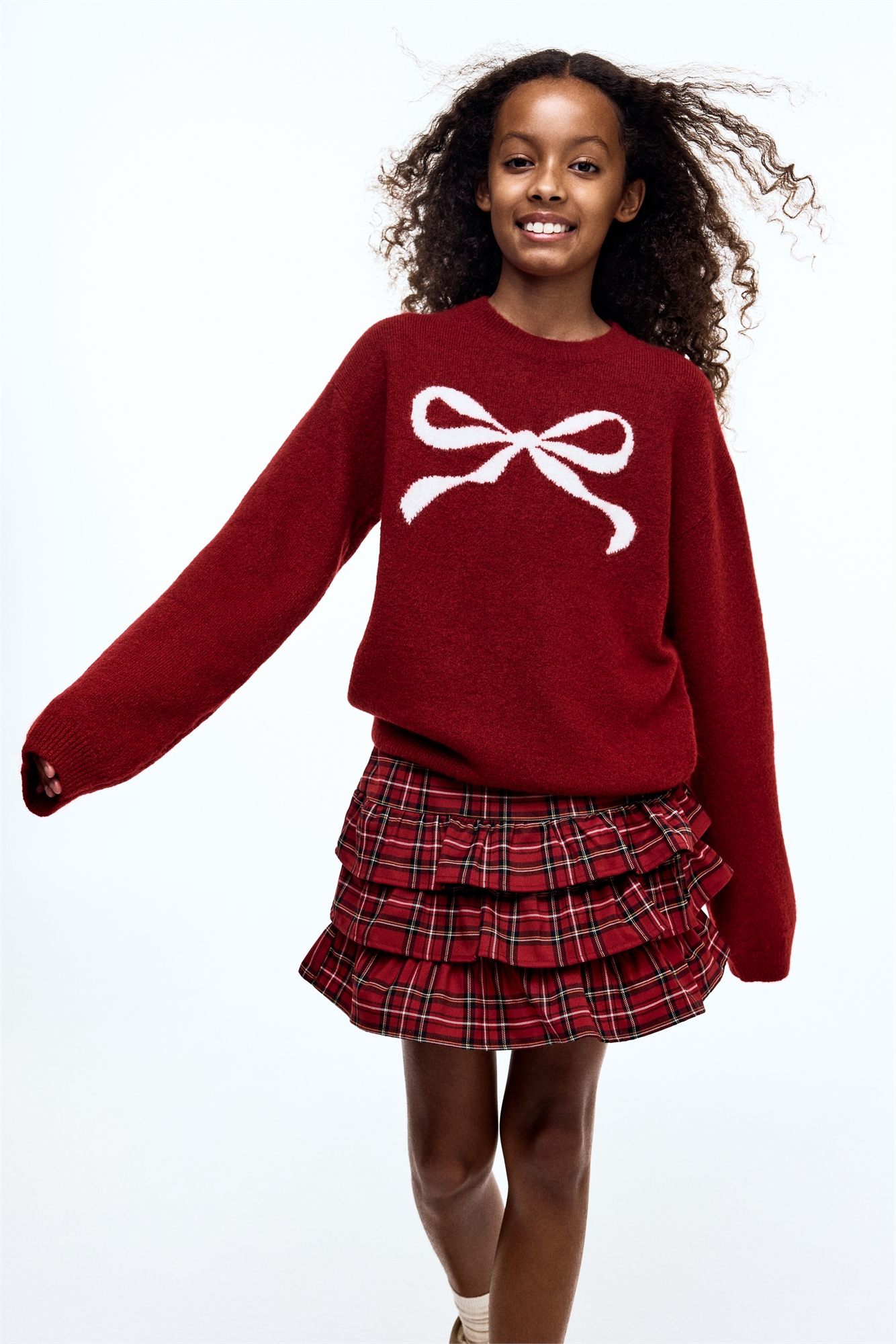 Юбка из мягкого плетения с воланами и эластичным поясом с декоративным бантом спереди.