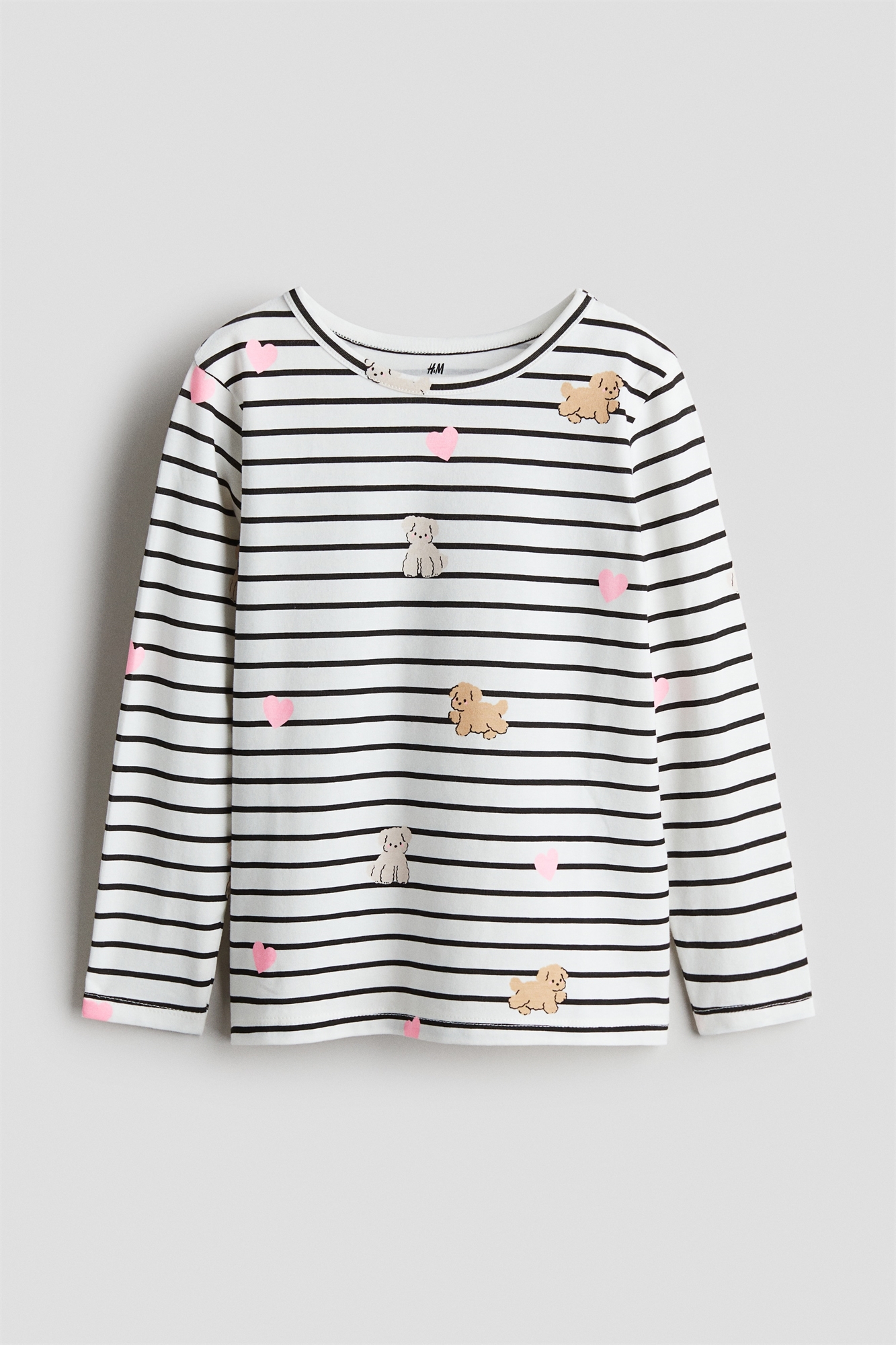 Топ с длинными рукавами из принтованного хлопкового джерси с круглым вырезом и прямым покроем.