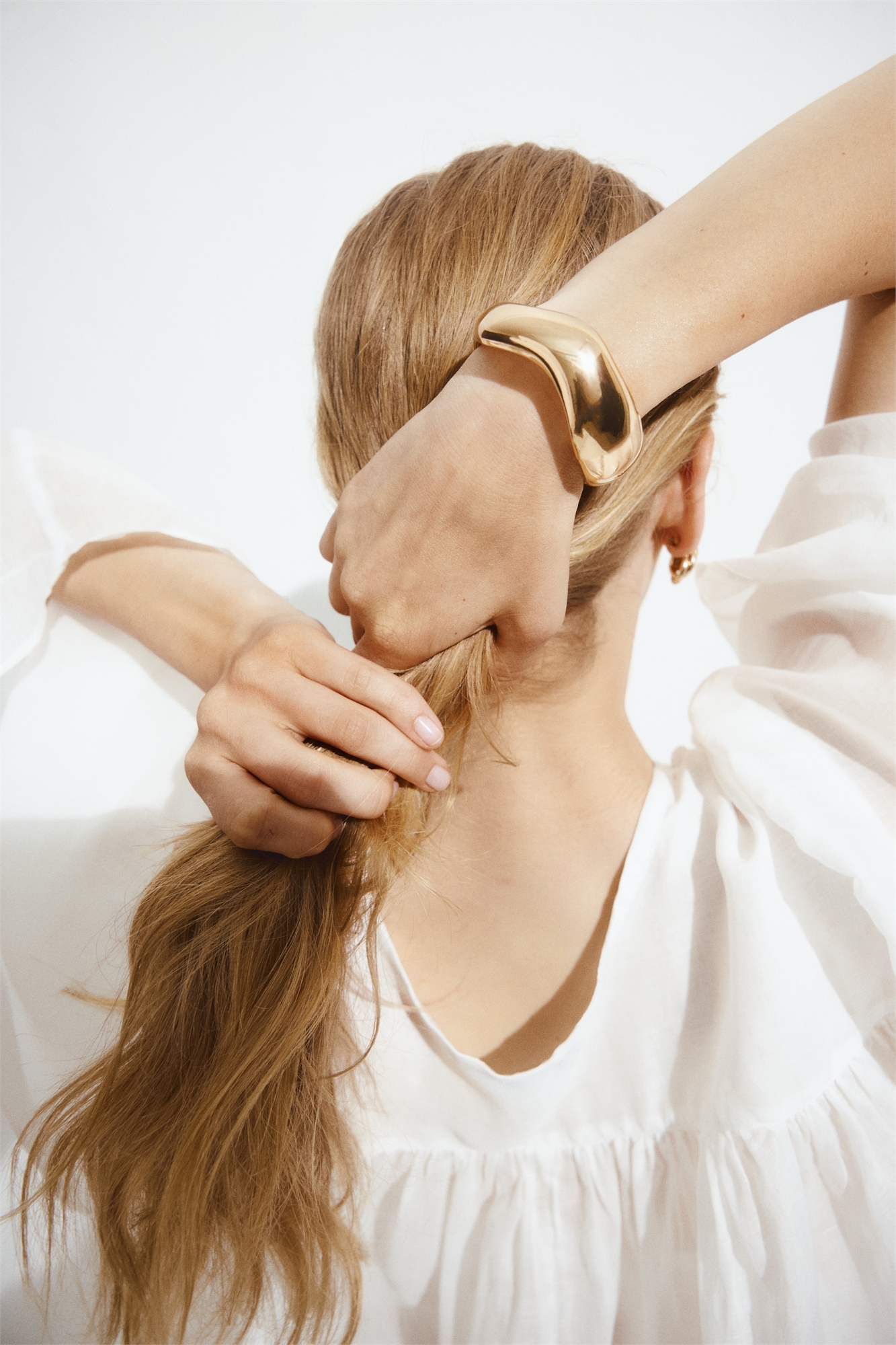 Петлевой браслет из блестящего металла с асимметричным дизайном.