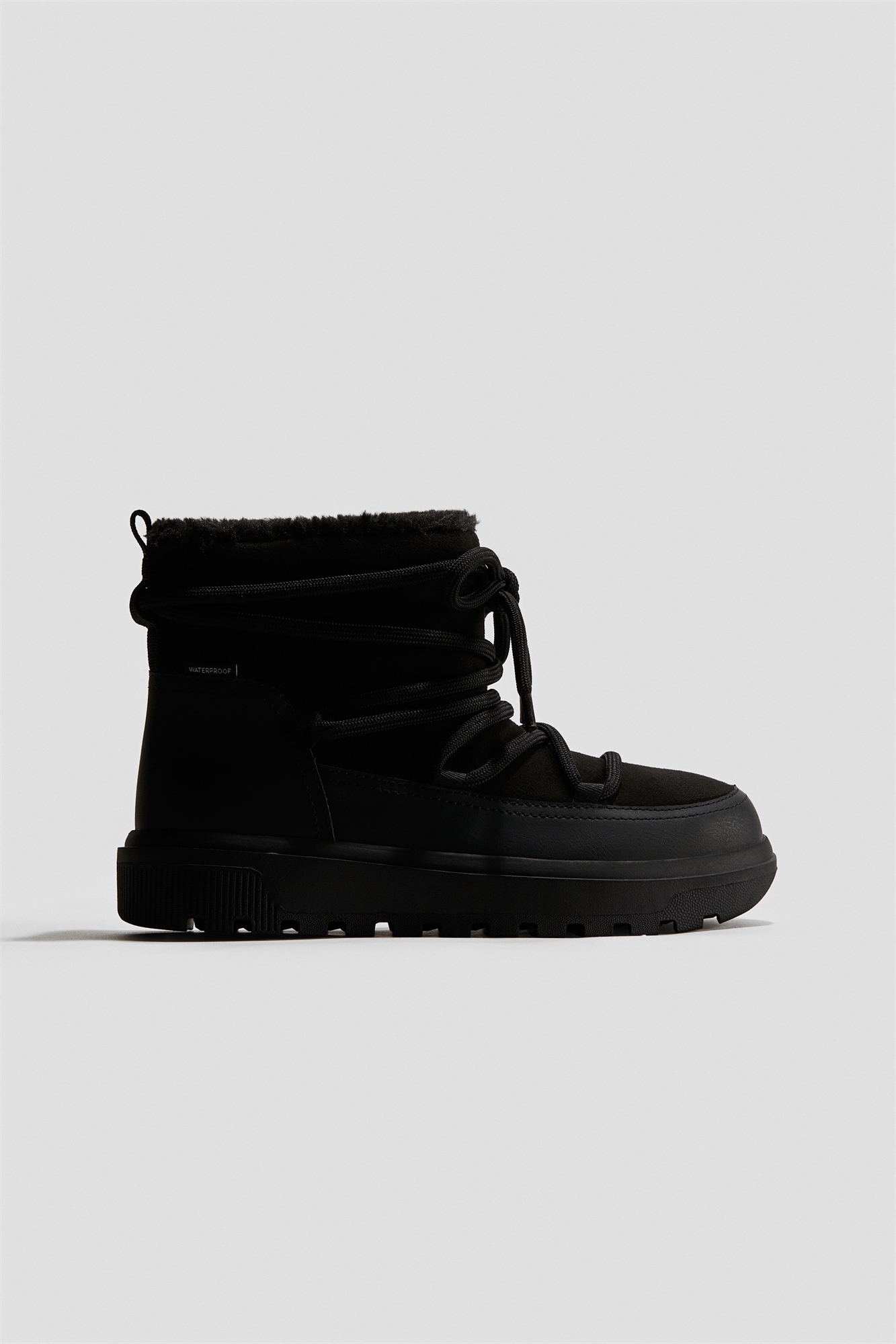 Снеговые сапоги из ворсистой ткани со шнуровкой. Теплая, пушистая подкладка и стелька из технической пены Cellfit™ для дополнительного комфорта. Петля из гросгрейн на задней стороне и мохнатая узорчатая подошва.