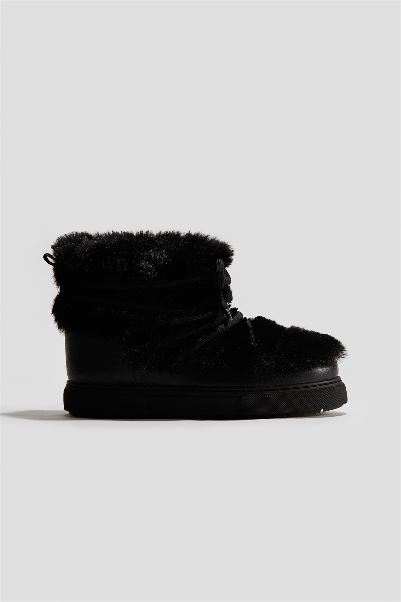 Пушистые снеговые сапоги со шнуровкой. Теплая, пушистая подкладка и стелька из технической пены Cellfit™ для дополнительного комфорта. Петля из гросгрейн на заднике и мохнатая узорчатая подошва.