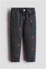 Джинсы с 5 карманами из мягкого хлопкового денима с принтом на всю длину. Регулярная посадка по бедрам и ляжкам с зауженными ногами. Регулируемый эластичный пояс и ширинка на молнии с пуговицей.