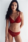 Кружевные трусы с заниженной V-образной талией, ластовицей и высоким разрезом сзади.