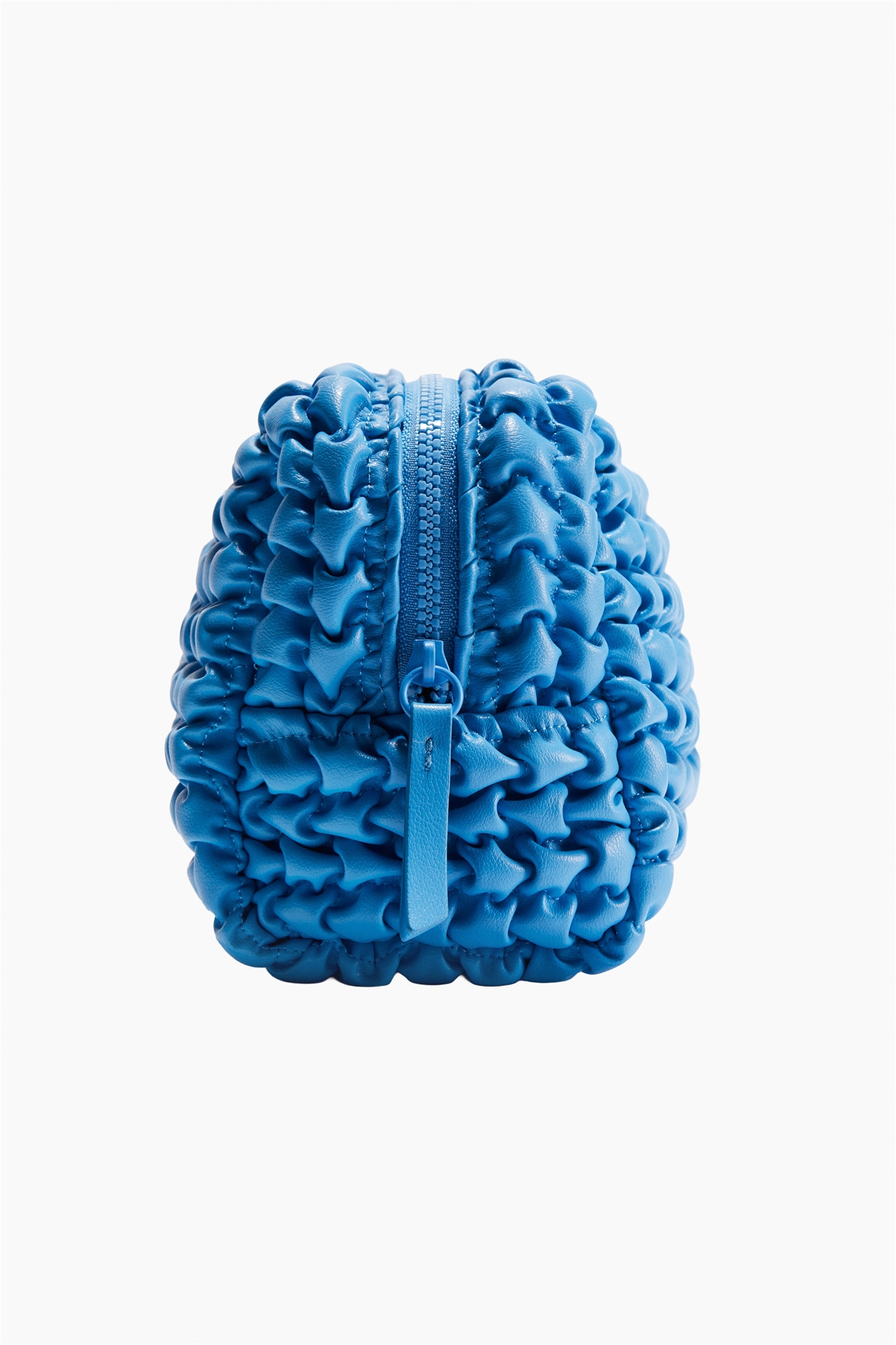 Макияжная сумка из ткани с покрытием и выразительным стеганым узором. Веган. Глубина 8 см. Высота 12 см. Ширина 20 см.