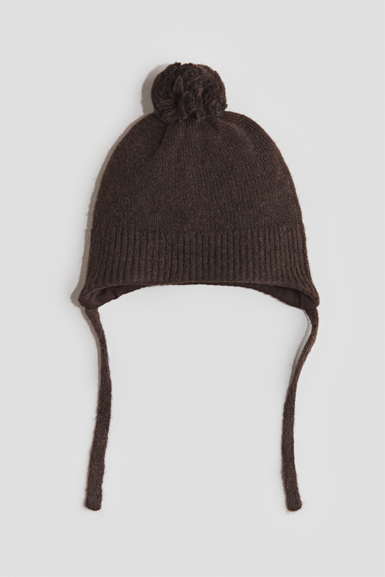Пинетки на подкладке из мягкого трикотажа в рубчик с пушистым помпоном на макушке и ушанкой с завязками.