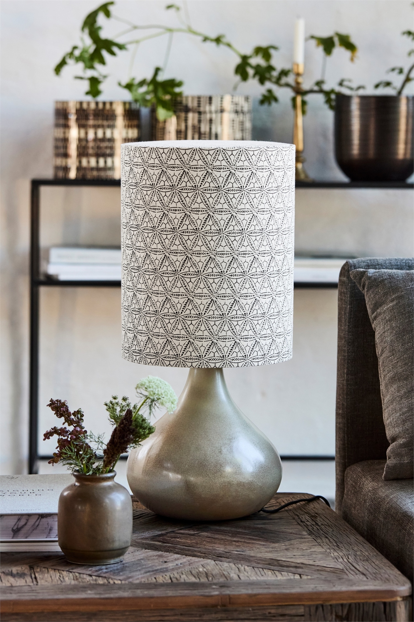 Эта настольная лампа сочетает в себе современный дизайн с уютной эстетикой и придает шарм любой комнате. Керамическое основание песочного цвета создает естественный, землистый вид, а льняной абажур с черным этническим узором, нанесенным вручную, создает теплый эффект освещения. Идеально подходит для гостиной, прихожей или спальни, создавая стильную и привлекательную атмосферу.- Керамическое основание песочного цвета- Ручная печать этнического узора- Универсальный- Стильный и привлекательныйПривнесите стиль и тепло в ваш дом с помощью этой элегантной настольной лампы. Д:27 см, Ш:27 см, В:61 см.
