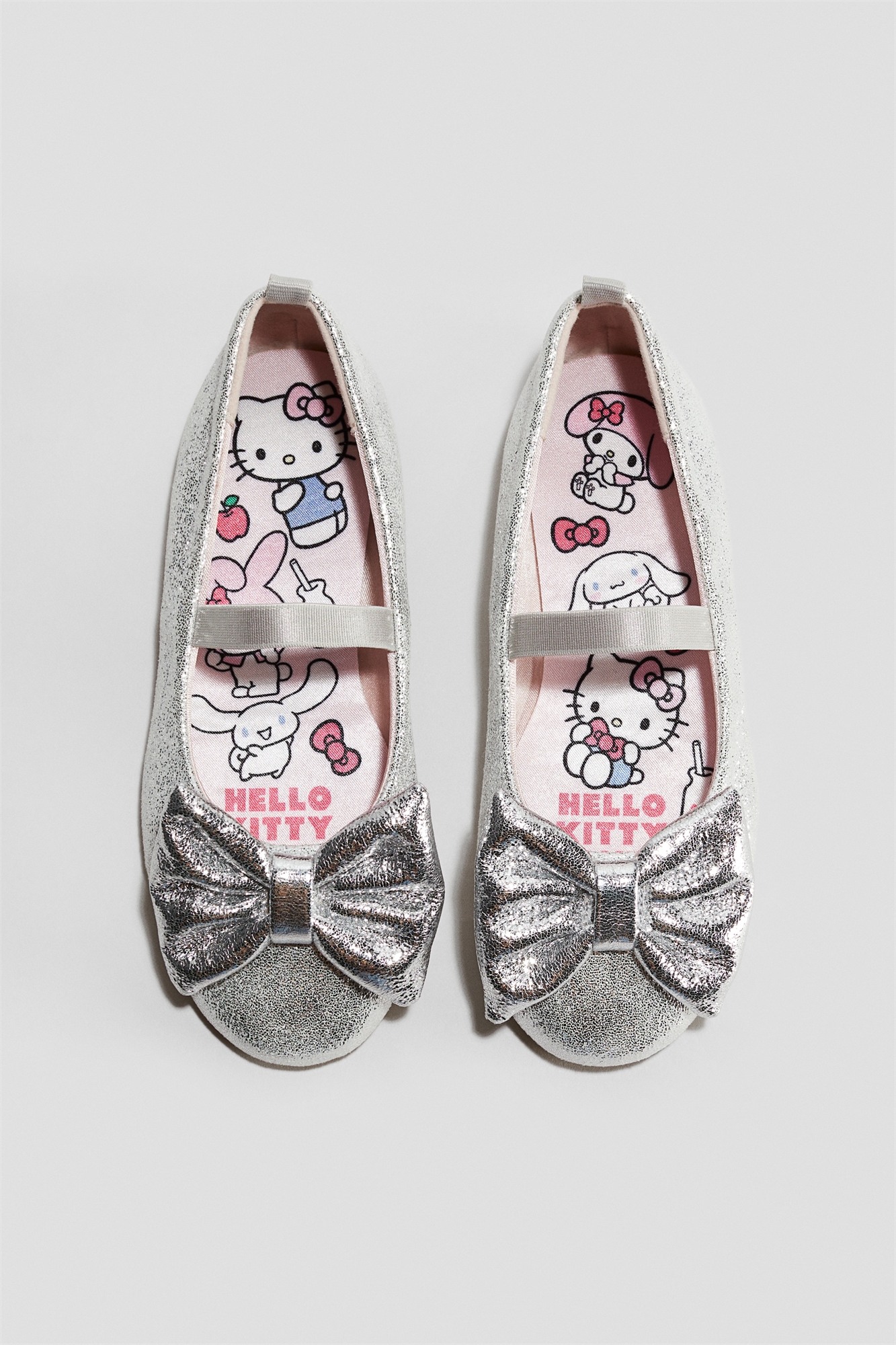 Блестящие балетки с большой аппликацией в виде банта спереди. Эластичный ремешок на ноге, круглые пальцы и стелька с принтом из технической пены Cellfit™ для дополнительного комфорта.