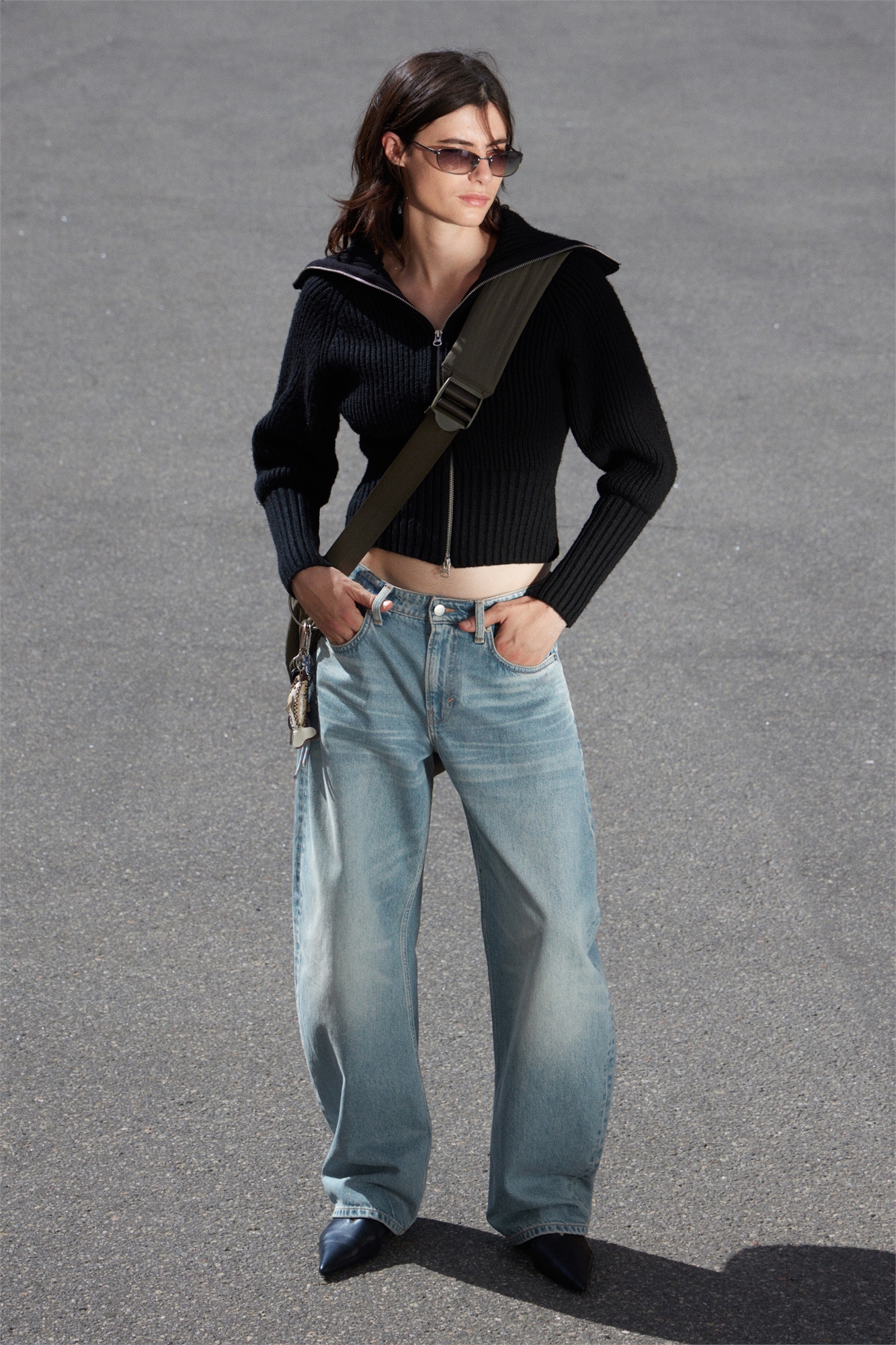 Ребристый вязаный кардиган на молнии с зауженным силуэтом и скульптурной формой. Созданный из структурированной пряжи с добавлением шерсти, он имеет высокий воротник-стойку, рукава реглан и двустороннюю застежку-молнию спереди. Манжеты и подол с удлиненными ребрами жесткости придают модели дополнительную выразительность и фактурность. С внутренней стороны имеется незаметная застежка-молния.