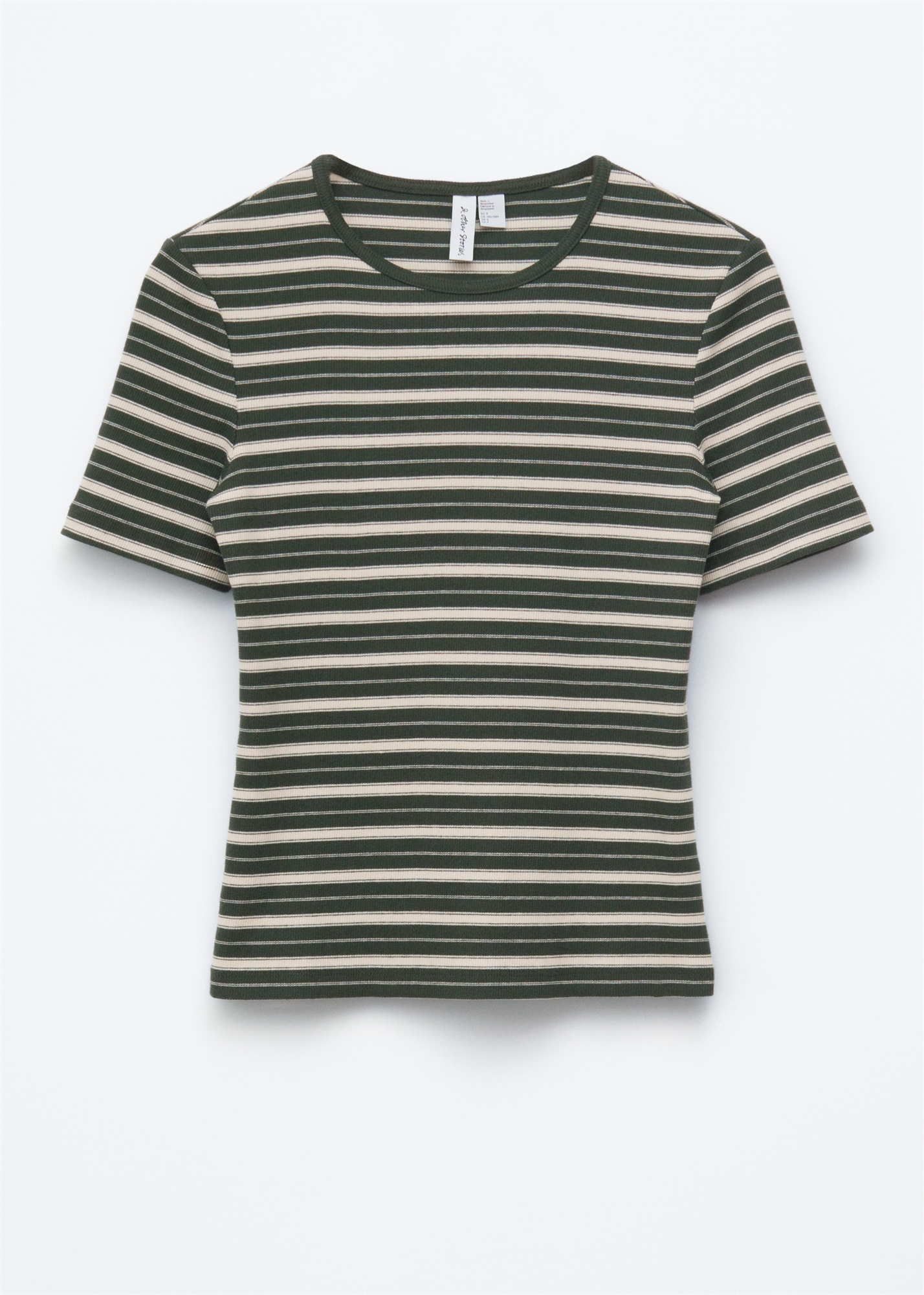 Эта футболка сшита из мягкого, эластичного хлопкового бленда в рубчик. Она имеет круглую горловину и короткие рукава. Носите с джинсами или мини-юбкой. Длина футболки: 55,5 см / 21,8" (размер S)
