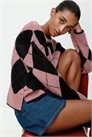 Джемпер свободного кроя из тонкого жаккардового трикотажа с добавлением шерсти. Круглый вырез, слегка спущенные плечи и длинные рукава с окантовкой на манжетах. Подол с ребристой отделкой и разрезом с каждой стороны.