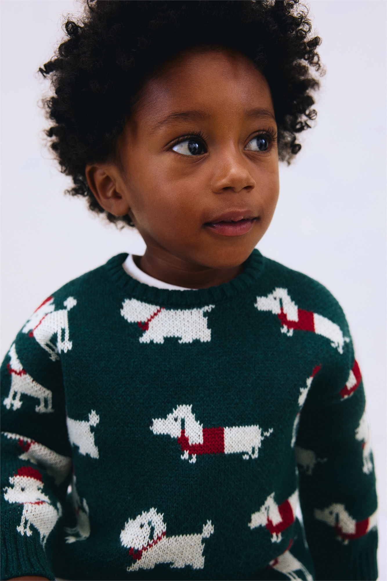 H&M Adorables. Подготовьтесь к веселому и волшебному сезону с этим уютным джемпером из мягкого хлопка с жаккардовой вязкой. Круглый ребристый вырез и застежка на пуговицы сзади. Спущенные плечи, длинные рукава и окантовка манжет и подола. Коллекция H&M Adorables - это подборка удобных и качественных вещей, которые не подвластны времени.