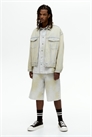 Шорты с 5 карманами из плотного хлопкового денима. Прямые штанины и мешковатый крой от сиденья до подола с большим запасом по всей длине ноги. Заниженная промежность, обычная талия и ширинка на молнии.