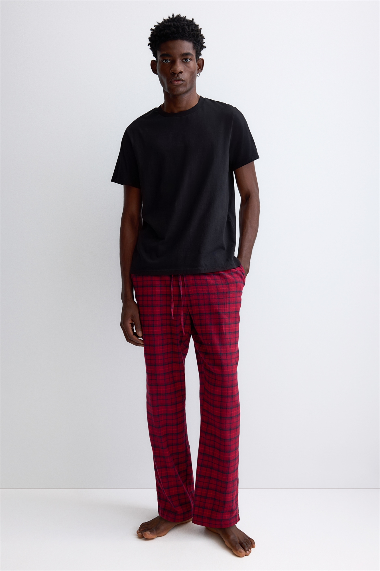 Брюки из мягкой хлопковой фланели с эластичным поясом на завязках, фальшивой ширинкой и диагональными боковыми карманами. Расслабленный крой для непринужденного, но не чрезмерного силуэта.