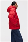 Куртка оверсайз из стеганого нейлона с капюшоном, воротником-стойкой и застежкой-молнией спереди и защитой подбородка от натирания. Накладные карманы спереди с кнопкой и карманы для рук сзади. Скрытая эластичная резинка на манжетах и эластичный шнурок со стопорами на подоле. На подкладке.
