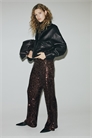Облегающие брюки из сетки с блестками, с высокой талией, ширинкой на молнии, скрытой пуговицей и застежкой на крючок и планку. Облегающие ноги с подкладкой из джерси.