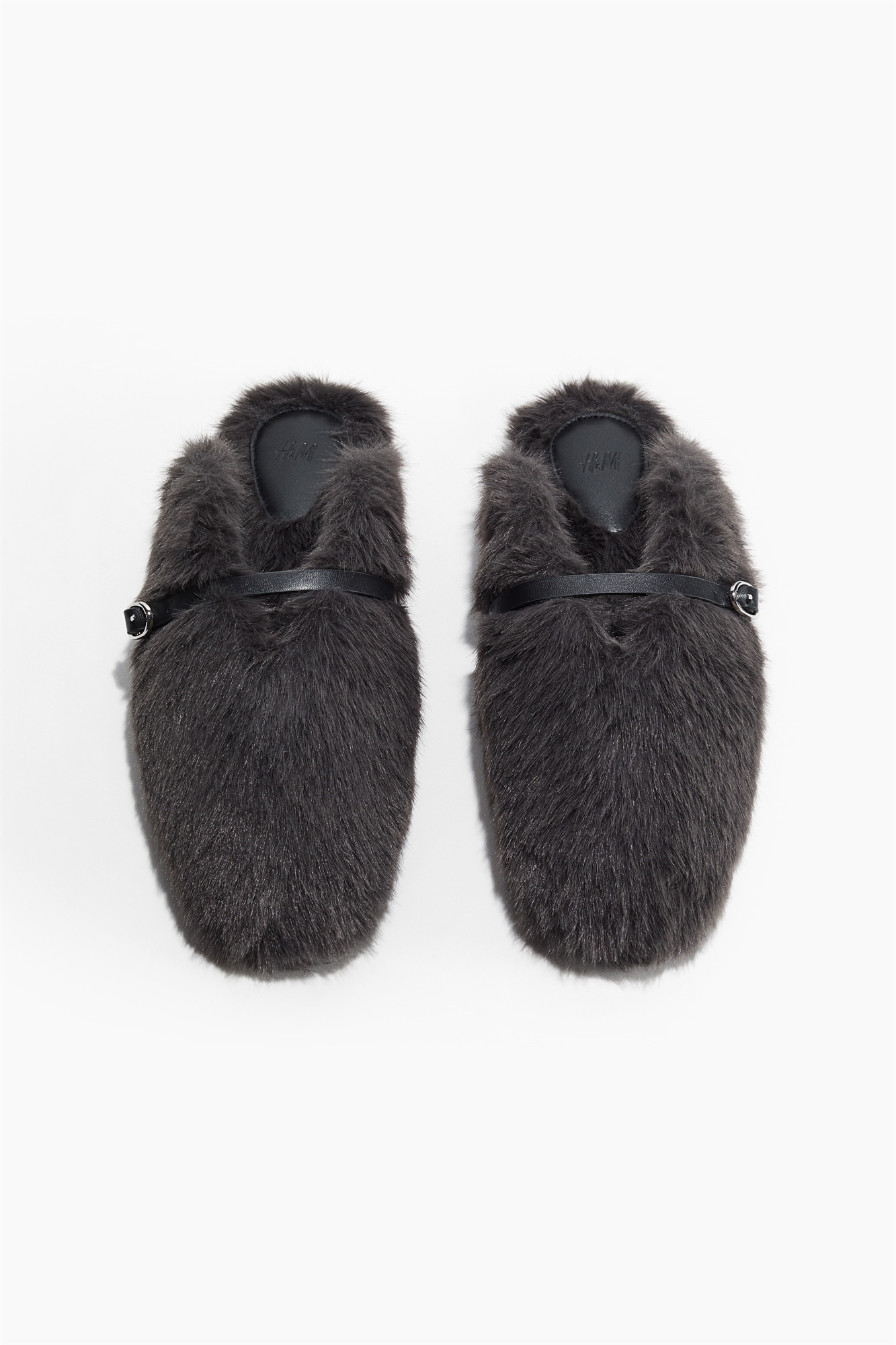 Тапочки из пушистой ткани с регулируемым ремешком из ткани с покрытием и металлической пряжкой с одной стороны. Атласная подкладка и пушистая стелька.