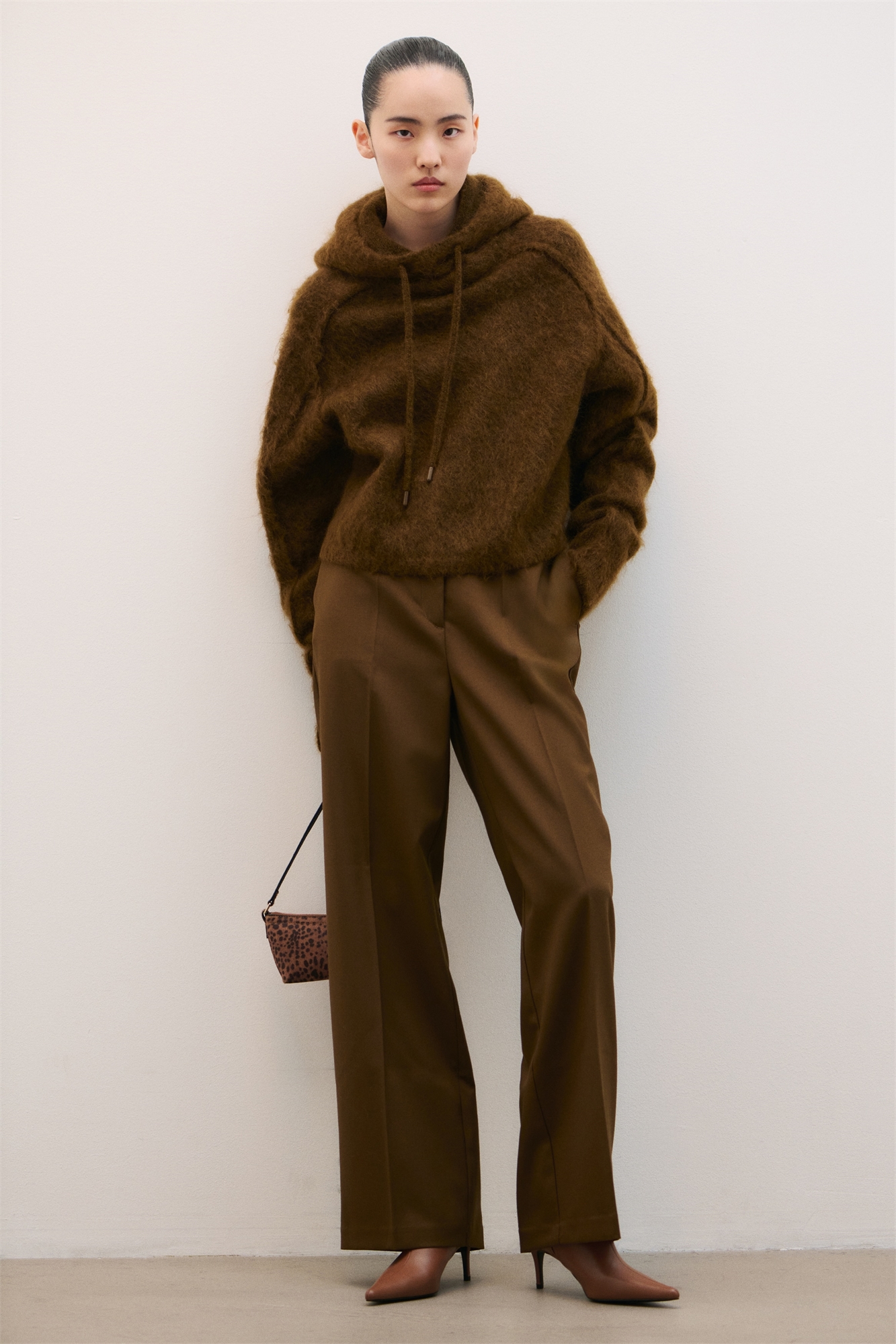 Ботинки по щиколотку из ткани с покрытием, заостренным носком и видимым швом спереди. Узкий закрытый каблук и застежка-молния с одной стороны. Подкладка и стелька из джерси.