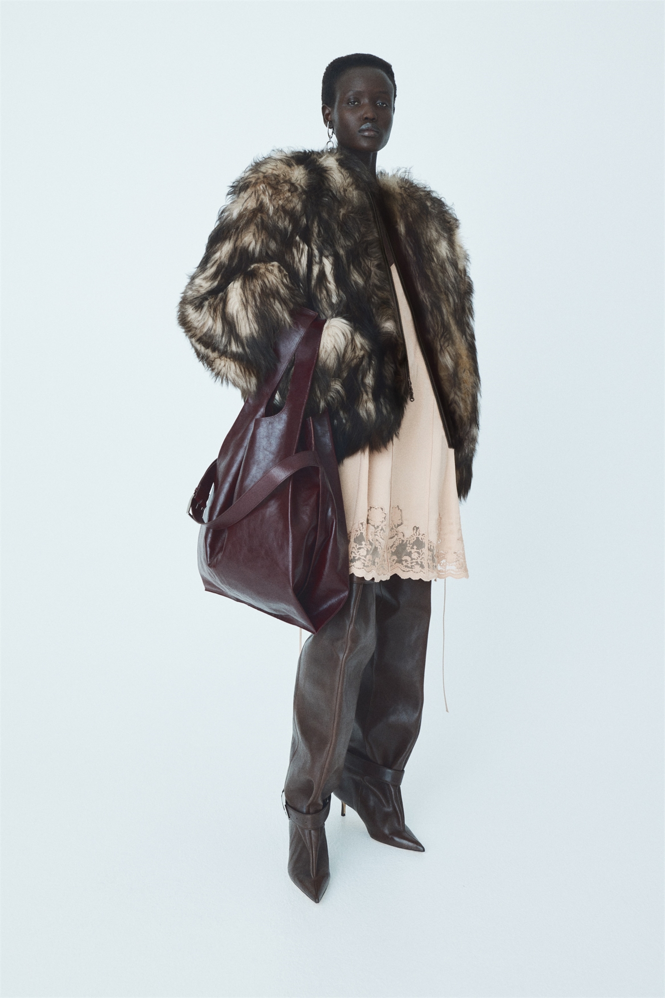 Короткое платье А-линии из мягко драпирующегося атласа с оверлочными швами по всей конструкции. V-образный вырез и узкие регулируемые бретели, которые можно отстегнуть сзади для различных вариантов укладки. Открытая нагрудная вытачка придает стильный изгиб, а узкие завязки по бокам можно обернуть и завязать на талии. Подол с гребешком и нежной кружевной вставкой. Без подкладки для легкости.