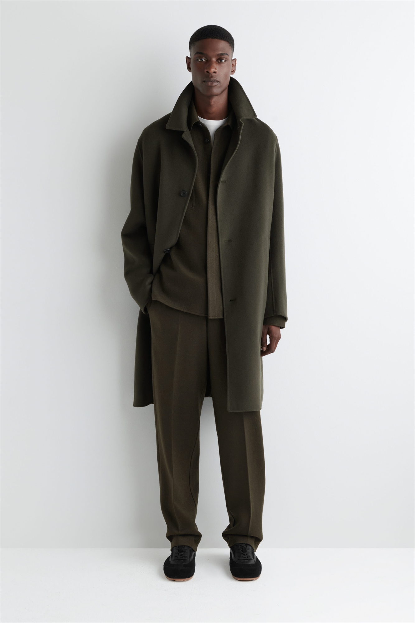 Эти прямые брюки из мериносовой шерсти и хлопка, сваренного для придания тактильных ощущений, являются основным элементом современного гардероба. Они имеют складки спереди, эластичную талию сзади и внутренний шнурок для подгонки по фигуре. Дополните их подходящей рубашкой. Свободный кройЗастежка на крючок, планку и молниюБоковые накладные карманы, задние накладные карманыЭто изделие содержит шерстяное волокно Responsible Wool Standard TE-00047206 (RWS) с ферм, сертифицированных в соответствии с требованиями к благополучию животных и управлению землей Материал: 57% шерсть мериноса, 43% хлопок. Подкладка: 100% хлопок. Без учета отделки / Сухая чистка Внутренняя длина штанины размера M составляет 79,5 см / Модель носит размер M