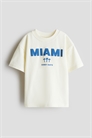 Свободная футболка из принтованного хлопкового джерси с ребристой окантовкой по вырезу горловины и спущенными плечами.