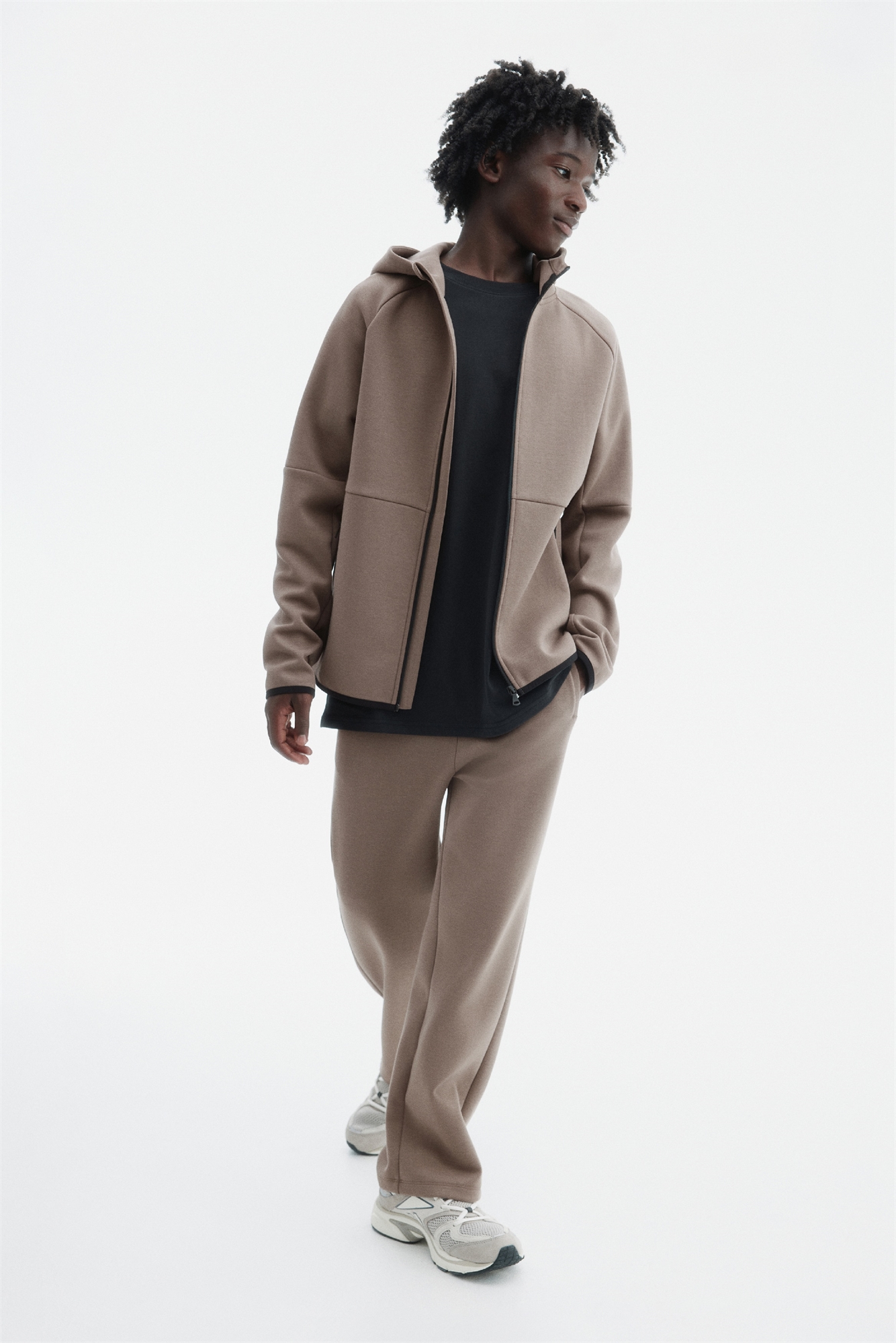 Спортивные джоггеры из функционального трикотажа с добавлением DryMove™, который отводит влагу от кожи, обеспечивая комфортную сухость во время движения. Эластичная резинка и утягивающий шнурок на талии, боковые карманы и прямые ноги с направленными вперед боковыми швами.