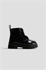 Ботинки со шнуровкой спереди, застежкой-молнией с одной стороны и петлей сзади. Мягкая велюровая подкладка и узорчатая подошва.
