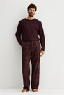Пижама с верхом из хлопкового джерси и низом из хлопковой фланели. Верхняя часть с круглым вырезом, слегка спущенными плечами, вышитой деталью на груди и длинными рукавами с обрезанными манжетами. Низ с эластичной отделкой и завязками на талии, фальшивой ширинкой, диагональными боковыми карманами и прямыми ногами.